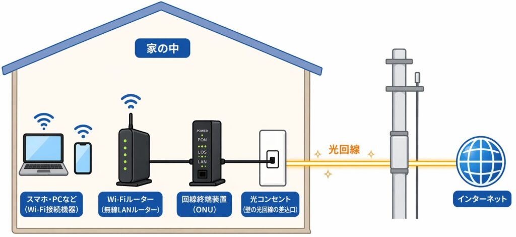 Wi-Fiルーターにつながっている光回線自体が、